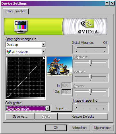 Ich selber nutze die Standard-Einstellungen der Grafikkarte (Geforce 6800LE), bei welchen nichts am Bild verändert wird!