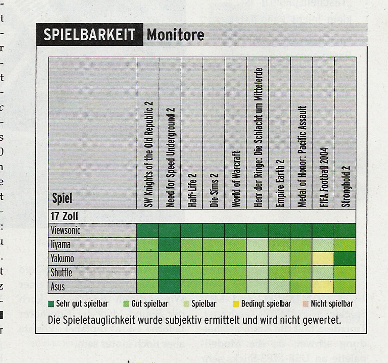 hi ich bin grad neu hier und selber auf der suche nach nen 17 " tft der veiwsonic VX724 sollte gut sein hab hier grad die pcgh vor mir und da wurde der 19 er mit den 4ms tft getestet die schreiben das....siehe bilder