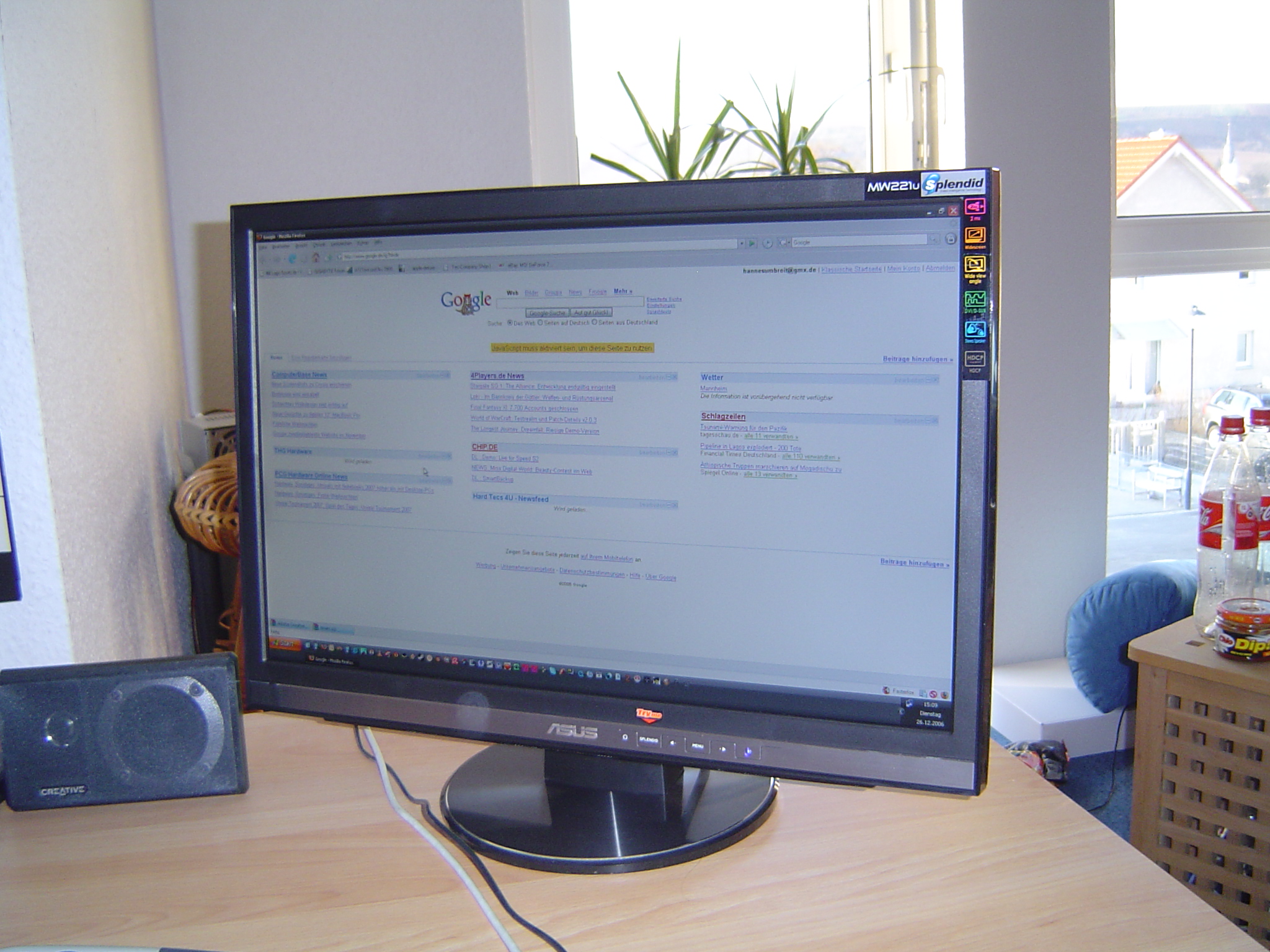 Nachdem ich nun zwei 19 Zoll-Modelle ausprobiert habe, mir aber beide nicht gefallen haben, bin ich auch die 22 Zoll Sparte aufmerksam geworden. Relativ früh habe ich den Asus entdeckt, der mir sofort zugesagt hat. Allerdings waren die vermuteten 400 Euro damals noch viel zu viel für mich. Nachdem er dann bei den ersten Händlern gelistet wurde, habe ich mich immer mehr mit dem Preis angefreundet. Von dem ersten, französischen Review habe ich mich nicht abschrecken lassen, und ihn letztendlich Mitte November bei tftshop.net bestellt. Kurz vor Weihnachten meldete sich dann der Geschäftsführer von tftshop.net (tiefflieger