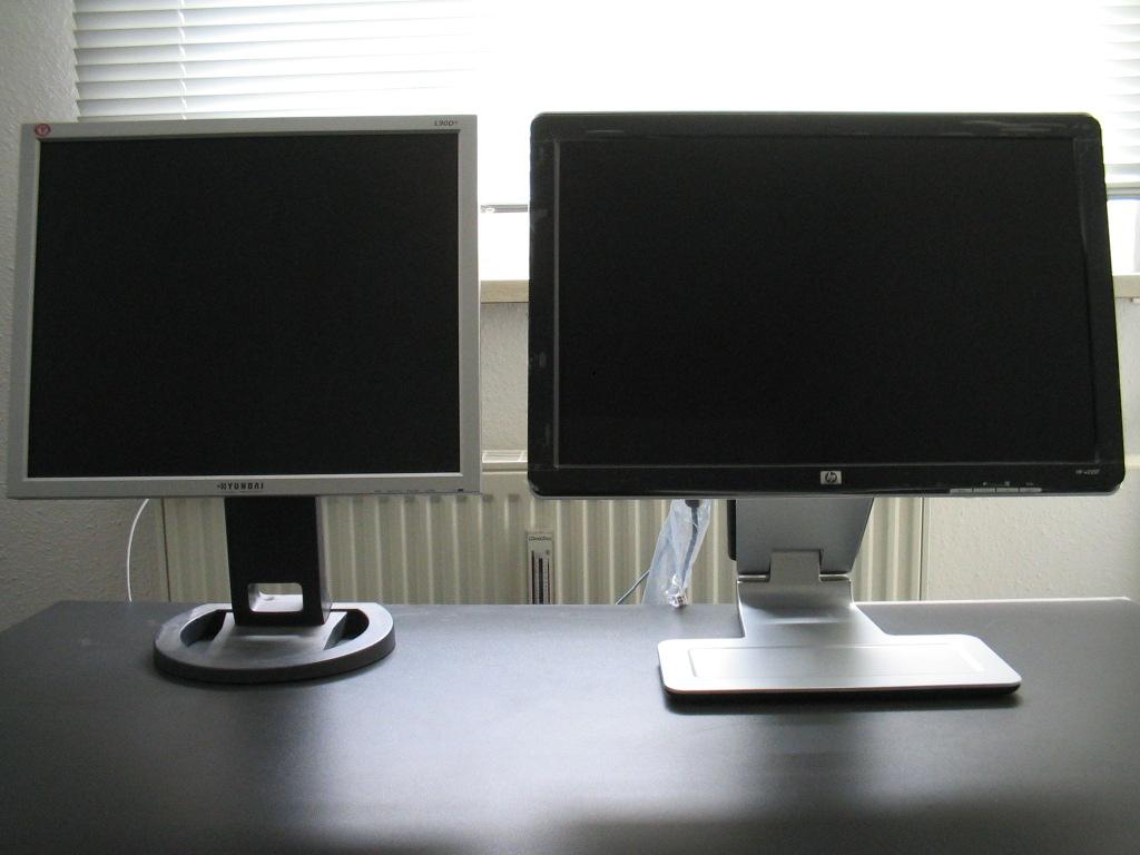 Nun kam also die eigentliche Bewährung. Der Anschluß an den Rechner, der erste Start. Angeschlossen natürlich wieder digital an die X1950pro.Schon beim Bootscreen suchten meine Augen nach Pixelfehlern. Es wurden keine entdeckt. Dann kam der Windows Screen...wieder WOW. Ihr merkt..ich bin leicht begeistert ;). Allerdings musste ich erst kurz nachhelfen, und die native Auflösung einstellen. Schon danach offenbarte sich ein sehr gutes Bild, das allerdings einiger Feinheiten benötigte. Ich habe im Grunde nur Kontrast und Helligkeit reduziert, die Farbtemperatur steht auf 6300K. Und ich bin zufrieden. Ich habe die HP Software nicht installiert, für meinen Geschmack ist die Bildqualität und Farbdarstellung im jetzigen Zustand mind. auf dem Niveau des L90D+, mit einem besseren Schwarzwert. Ich bin zufrieden. Pixelfehler konnte ich auch nicht finden.