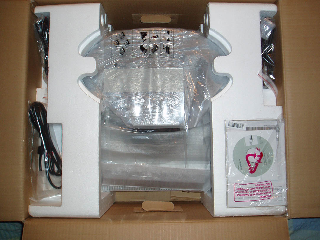 Nachdem man den Moni samt Styro-Verpackung rausgenommen hat und sich daran macht, die Umverpackung am Monitor zu entfernen, sollte man aufpassen, da einem bei Entfernung des äußersten Plastikfolienrings der bereits montierte und eingeklappte Standfuß entgegenfedert.. also gut festhalten das Teil..