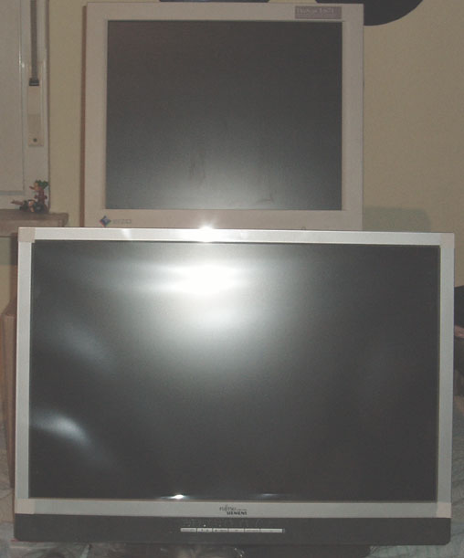 P.S.: das eine Bild mit zwei Monitoren ist nur zur Veranschaulichung des Größenvergleiches zwischen dem FSC und meinem alten Eizo.. Der Eizo ist übrigens ein 18,1 Zöller... KEIN 19er!