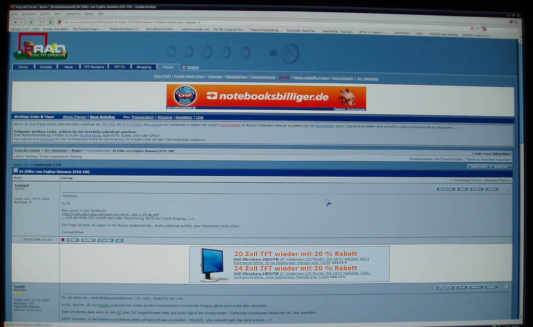 Alles in allem kann ich sagen.. so sehr hier auf diversen Punkten verschiedener Monitore herumgeritten wird (das hat hier ein anderer User schon mal sehr treffend beschrieben).. Der subjektive Eindruck zählt, so lange man kein Profi-Grafiker-Display für 3000 Euros braucht.. Für Semi-Profis ist denke ich mal schon der Eizo S2410W die erste Wahl, weil ich schon vermute dass der Eizo doch noch ein etwas besseres Bild hat.. Dafür hat der keinerlei Videoanschlüsse oder HDCP über DVI.. Und SUBJEKTIV.. Also rein für mich persönlich frage ich mich.. "echt? kann ein Bild noch besser sein als meines jetzt??" ..und auch wenn es so ist, hätte ich für den Eizo 350 Euro mehr hinlegen müssen, da ich den FSC ja wesentlich unter Strassenpreis bekommen habe.. Normalerweise sind die Preise vom Eizo und FSC ja in etwa gleich.. ich bin jedenfalls höchst zufrieden mit dem Teil..