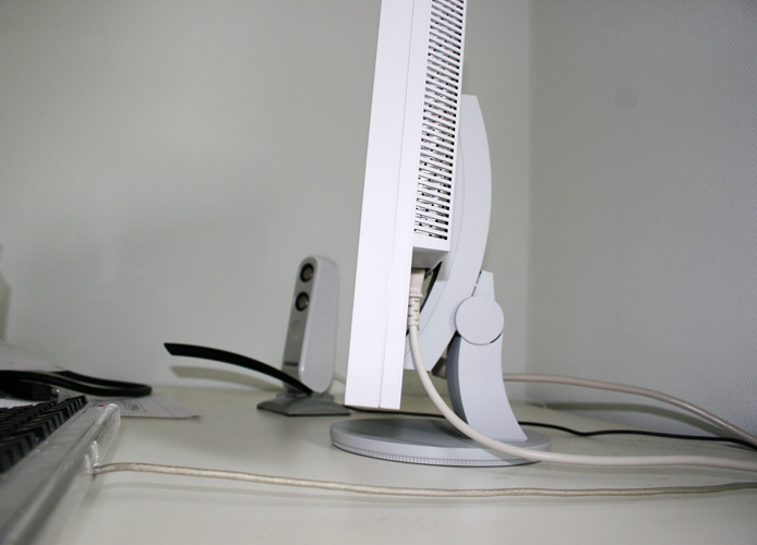 Kommen wir zum wichtigsten - dem Display. Ich bestellte mir den Monitor am Samstag Abend bei MediaOnline für 515 Euro. In der Nacht zum Montag hatte ich dann auch schon den dazugehörigen Albtraum: 25 Pixelfehler auf meinem Eizo Display! Schweissgebadet stand ich auf. Heute, als ich ihn angeschlossen hatte war es dann auch das erste wonach ich schaute: Pixelfehler. Und natürlich war da einer. Am rechten Bildrand. Doch zum Glück kann ich Zaubern, nahm meinen rechten Zeigefinger, strich leicht über den Pixelfehler: WEG WAR ER!