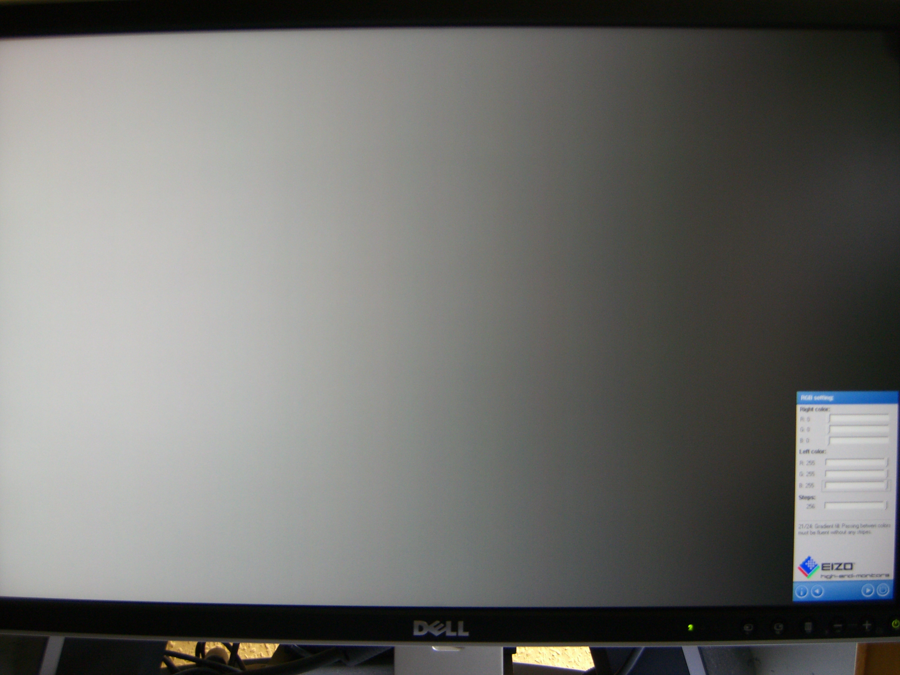 Helligkeit selbst bei Einstellung 0 zu hell. Abdunkeln durch Kontrastveränderung oder Farbeinstellungen ist auch nicht die Lösung da dann der UGRA-Test nicht mehr bestanden wird.