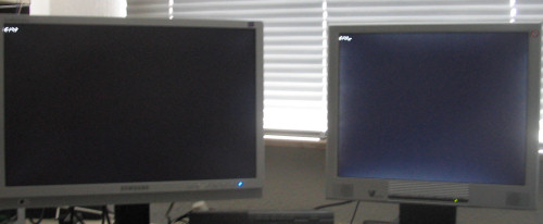 Anbei (als Attachment) mal ein Bild im Vergleich mit meinem Servermonitor, ein 17" V7 mit TN-Panel.