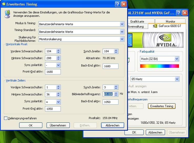Noch ein Tipp: es gehen auch locker 70Hz (ergibt 76khz) und das Bild wirkt wesentlich weicher und flüssiger (zB beim spielen). Weniger Bewegungsunschärfe.