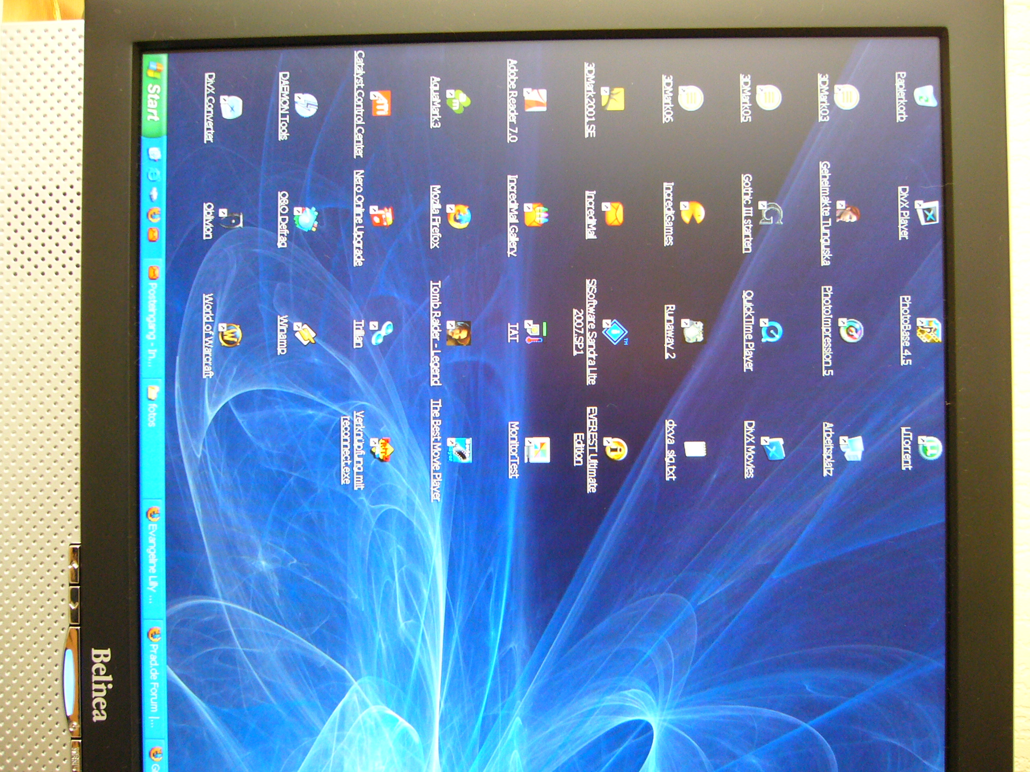 Anschliessend der nächste WOW Effekt.Obwohl Ich kurz einen 19' TFT per DVI in Betrieb hatte,kam mir jetzt das Bild noch schärfer vor.Da es ja nicht sein kann,das Analog besser ist als DVI,schiebe Ich das mal auf die recht groben Pixel beim 19'.