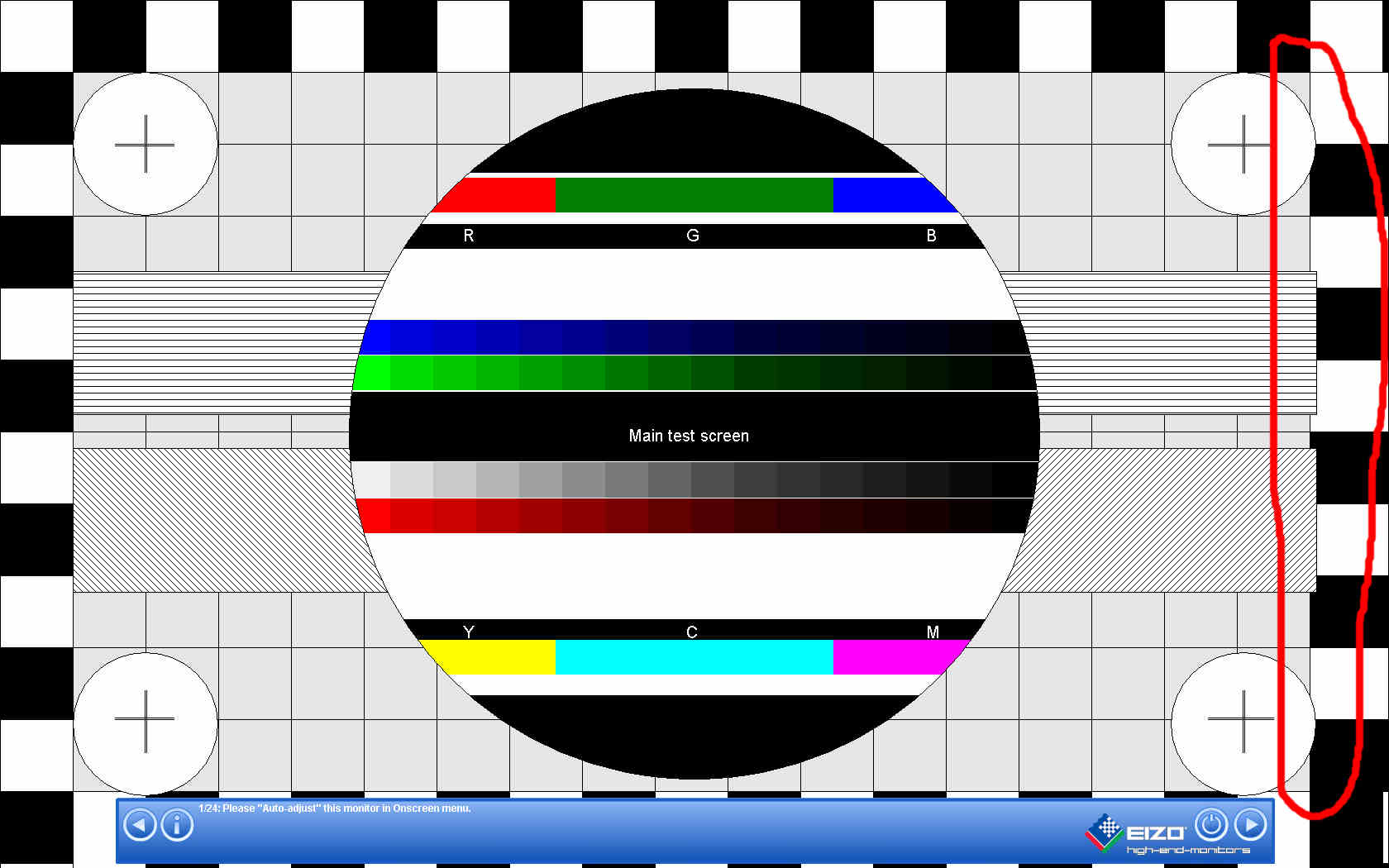 Hab den Monitor Test von Eizo nochmal durchlaufen lassen und dann das Problem deutlich gesehen.