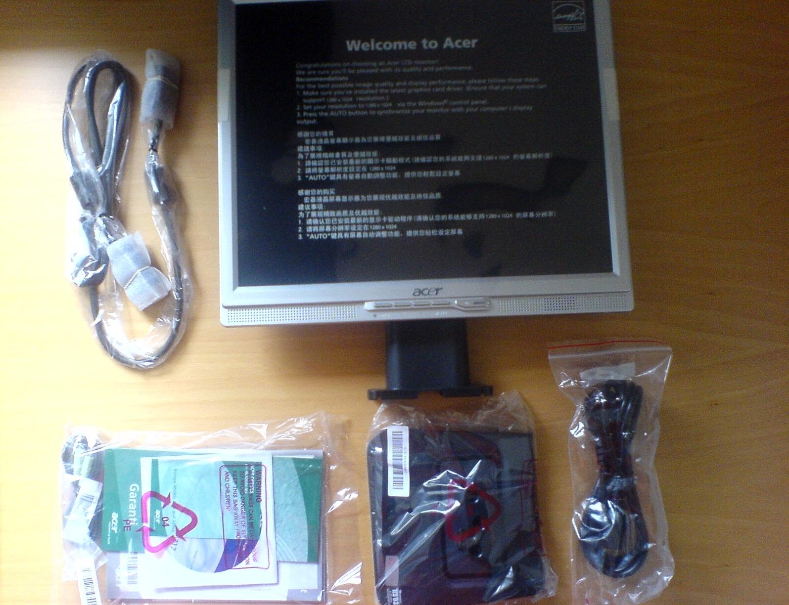 Verkaufe hier einen ACER AL1717" TFT, der gerade als Austauschgerät aus der RMA zurückgekommen ist. Daher nagelneu, mit kompletten Zubehör. Original-Rechnung ist vom 31.05.2005, hat also noch gut 1 Jahr Garantie. RMA-Beleg wird natürlich auch mitgeliefert.