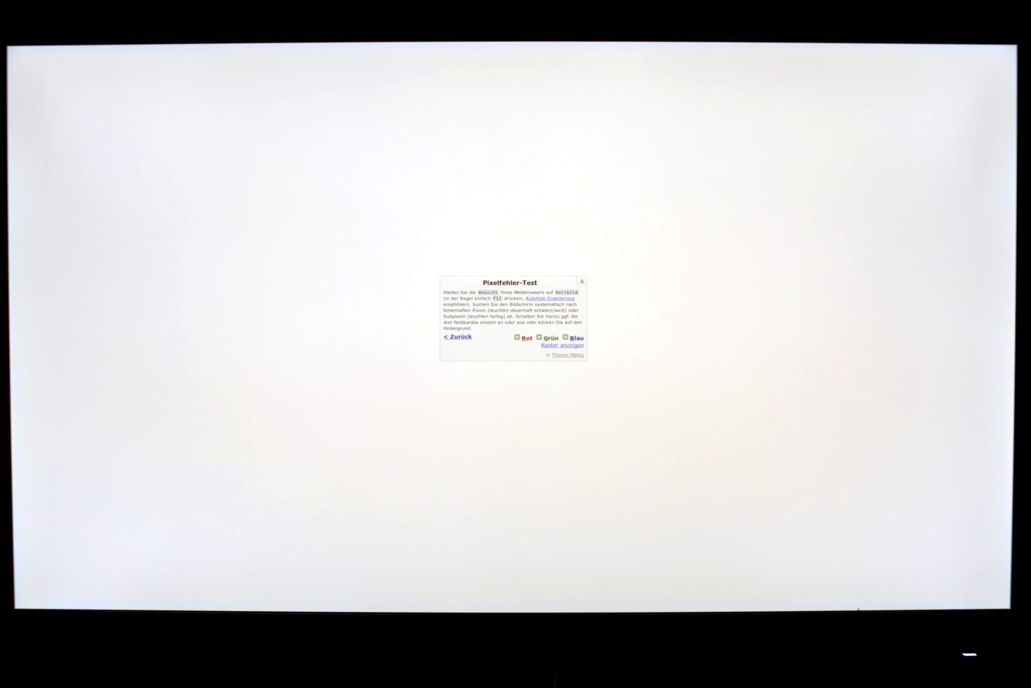 Zuerst war ich von den Farben in Werkseinstellung sehr begeistert. Dann habe ich mir verschiedene Referenzbilder angeschaut und musste feststellen, dass, wenn ich Weiß voll flächig darstelle, der Bildschirm zu den Rändern hin gräulich wird. Zuerst dachte ich, das hat mit dem Blickwinkel zu tun, leider jedoch nicht.