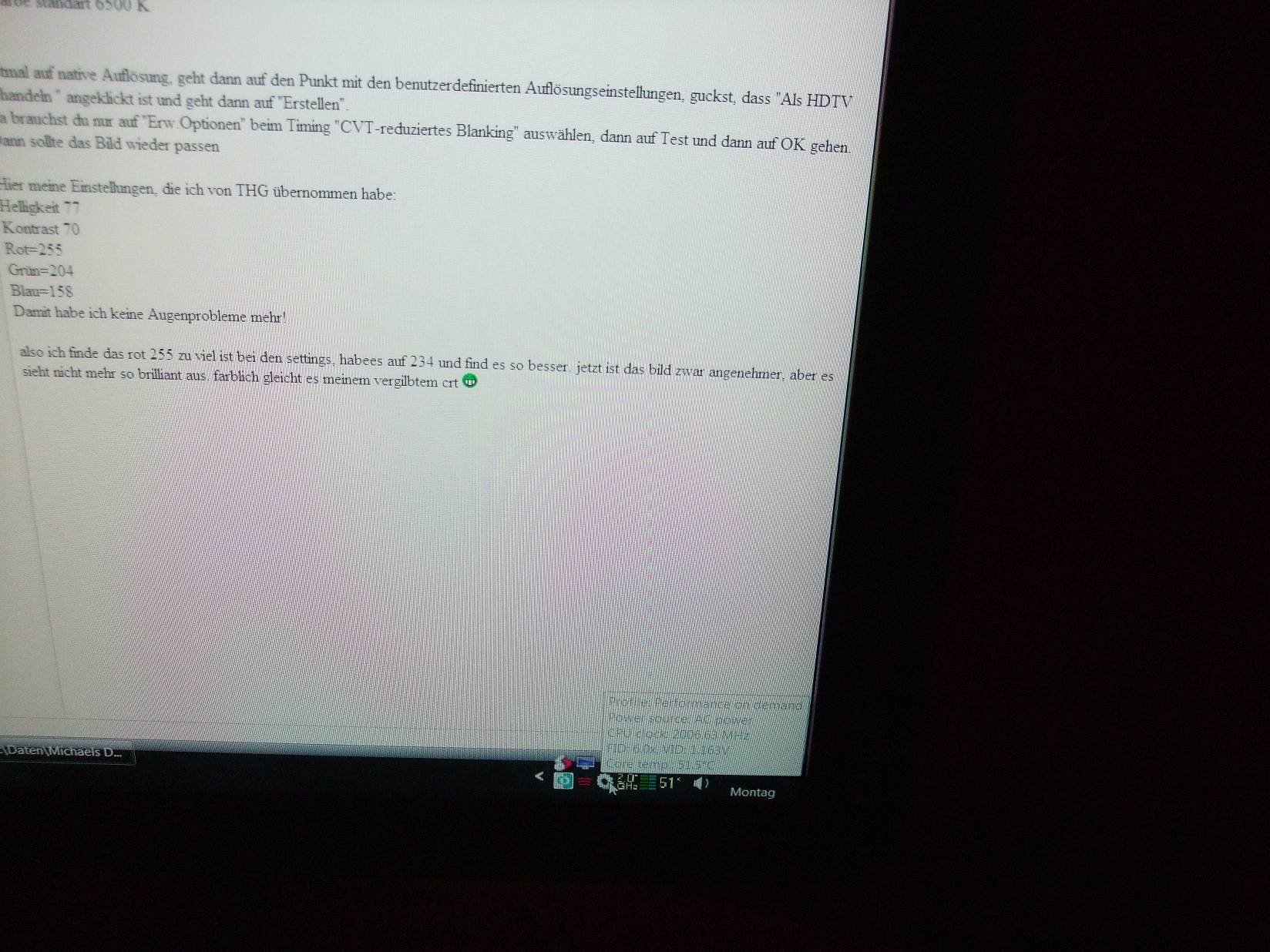 Aber dann ist es wohl wirklich das TN Panel, dass mich stört. Die Farbe der Icons in der Taskleiste ist mir seit dem ich den Monitor habe latent negativ aufgefallen - irgendwie blass matschig, aber ich konnte nicht so genau beschreiben warum das so war.
