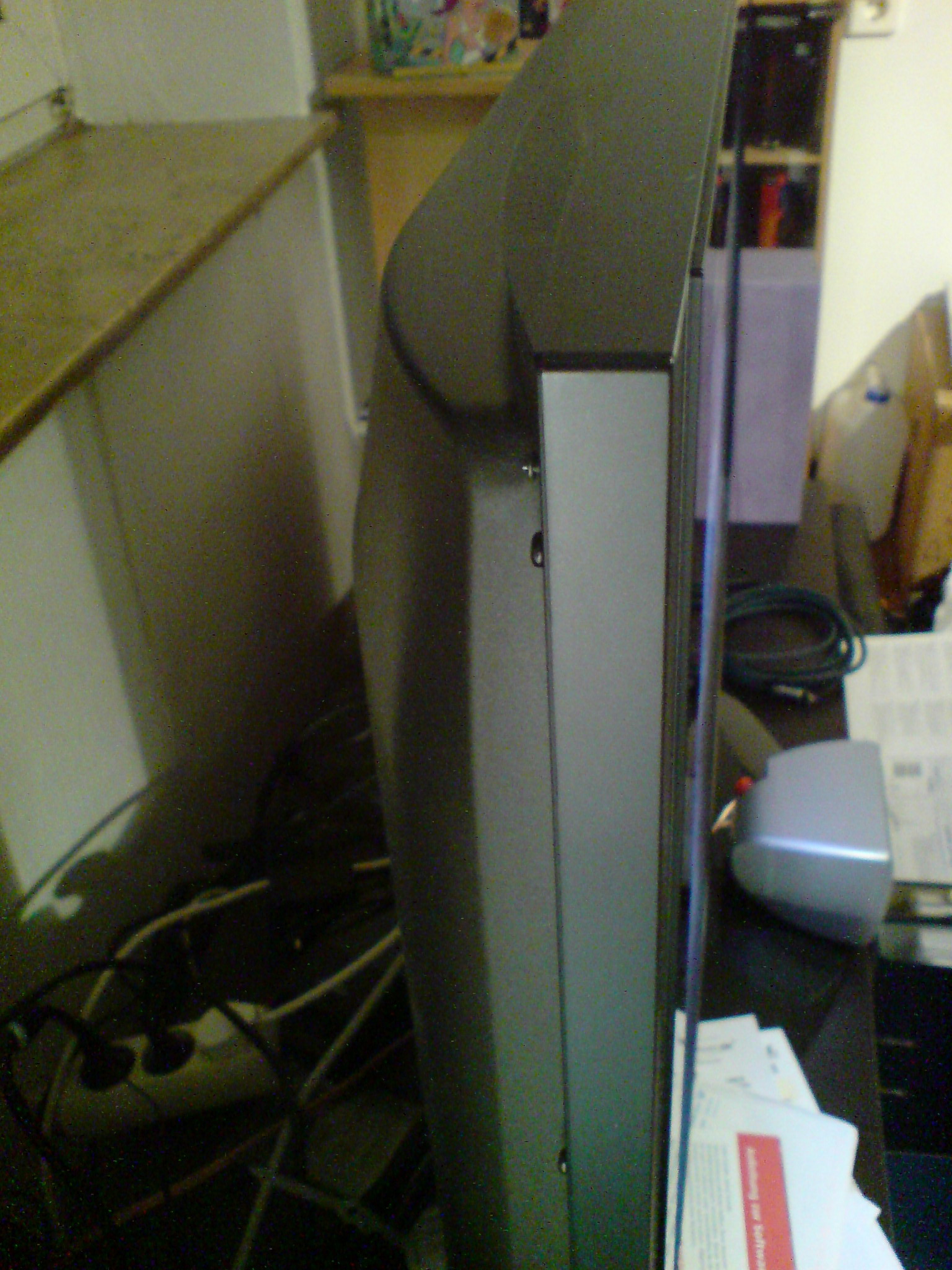 Bild 2 sieht doch viel dicker aus...diese schwarze verkleidung da...und im ersten bild ist der tv dünn(bild von vorgestern/die verkleidung an der seite is dort auch silber oder täusche ich mich?)