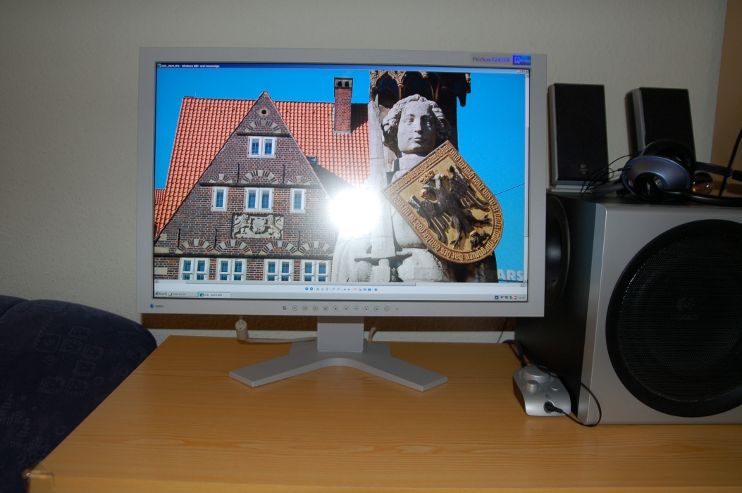 Wie manchen hier bekannt, hatte ich zuvor einen Eizo S2231WH-GY (der neue 22"-Monitor von Eizo mit wide gamut.) Wie einige andere User auch hatte ich jedoch das Problem, daß das Gerät einen Farbverlauf hatte (linke Bildhälfte grünstichig, rechte Bildhälfte rotstichig). Nach Rücksprache in Foren und mit der Eizo-Hotline entschied ich mich anschließend dazu, es mit dem Eizo S2431 zu versuchen. Ich bestellte das Gerät also - mit bezahlter Pixelfehlerkontrolle - jedoch kam es mit Pixelfehler. (Die Ausleuchtung vom ersten Gerät war auch nicht unbedingt der Hit.) Da ich ansonsten mit dem S2431 aber sehr zufrieden war, habe ich es nochmal - ebenfalls mit bezahlter Pixelfehlerkontrolle - mit dem S2431 versucht. Hier berichte ich nun von diesem Gerät, welches ich behalten werde.