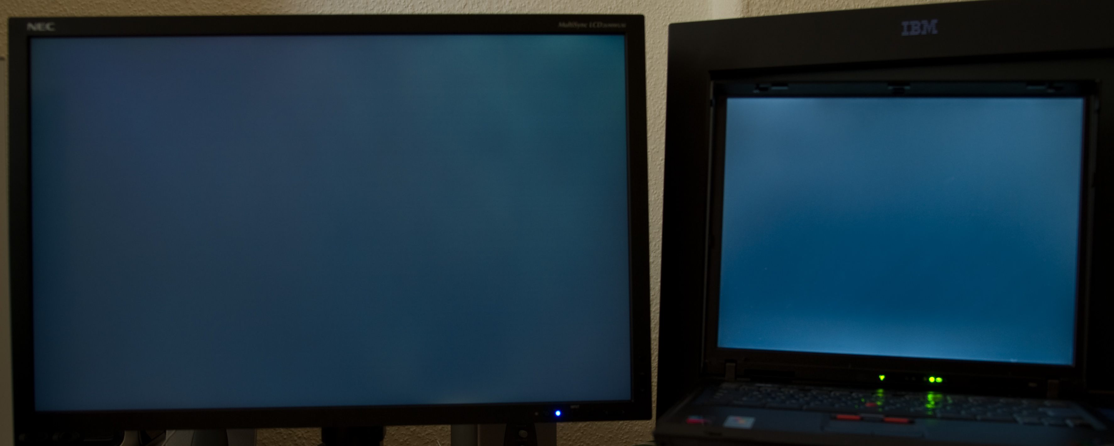 Damit man das besser sehen kann habe ich den TFT mit nem 5J. alten Medion und meinem IBM R51 Notebook verglichen.