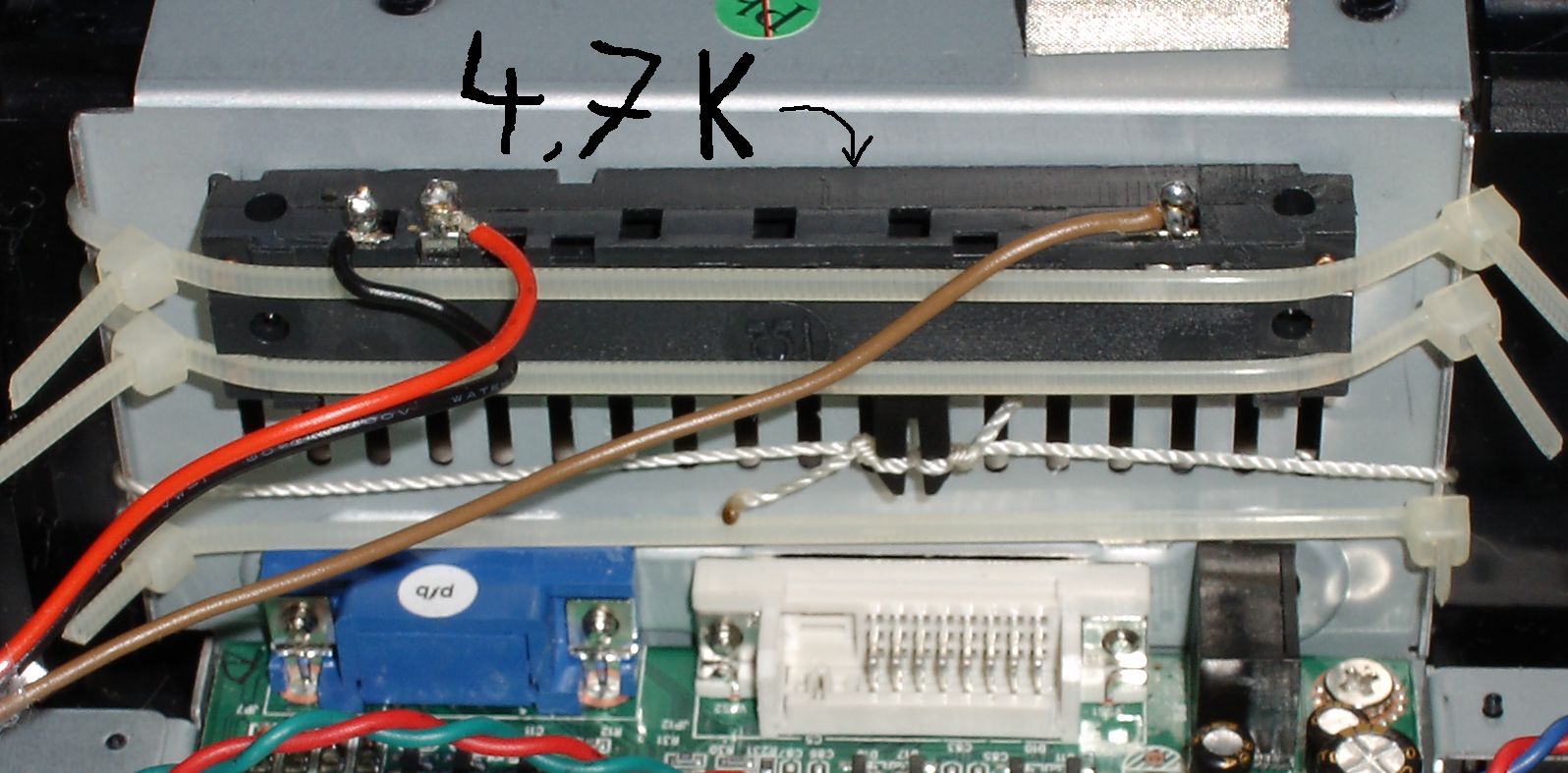 0,25 W würden völlig reichen. Aus gründen der handlichkeit habe ich die 1 W Metallschichtwiderstände genommen Artikel-Nr.: 419613 - 62