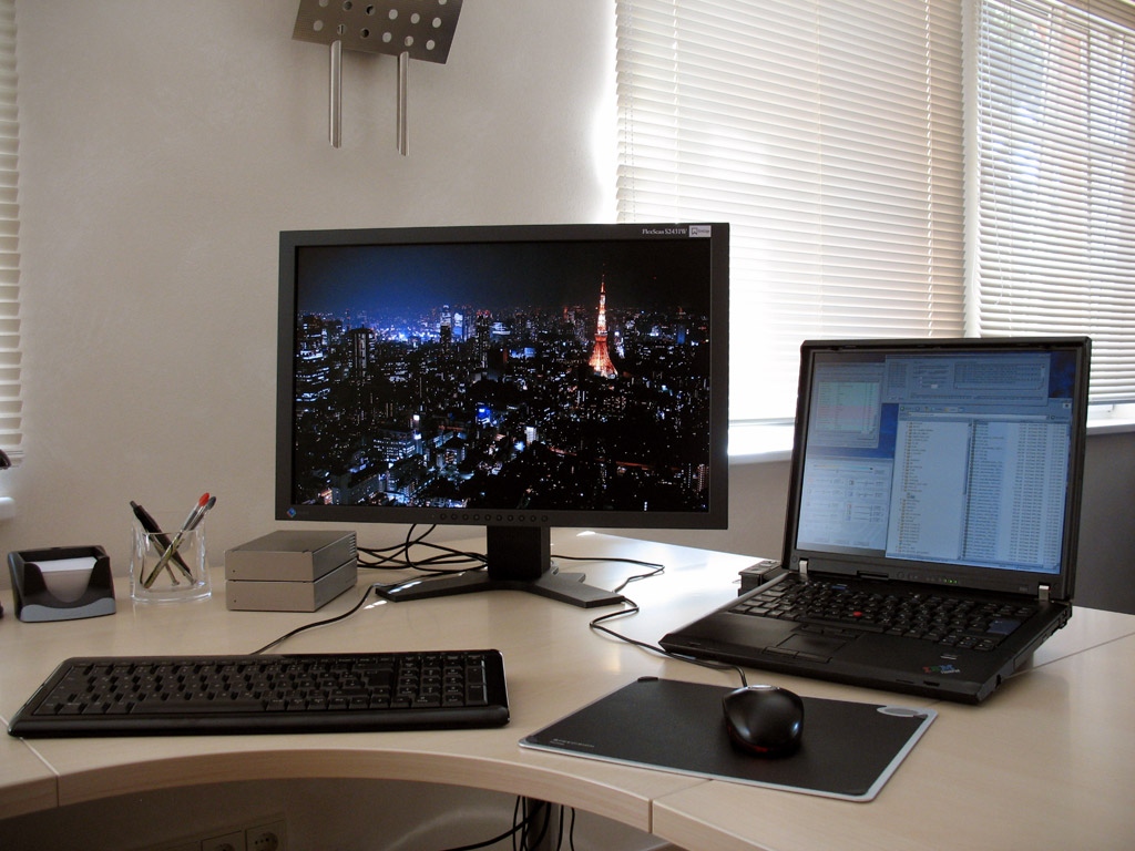 Das R60 steht daneben im Dualhead Betrieb - so hat man den Screenmanager, Winamp und Taskmanager immer Griffbereit. Sehr praktisch und die Tastatur vom Thinkpad kann man auch mal zum Tippen benutzen (die ist nämlich sehr gut).