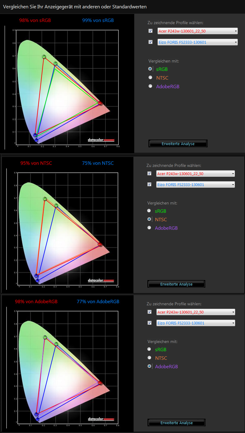 Im Anhang findet Ihr die Farbraumvergleiche. Der EIZO scheint hier weniger abbilden zu können. Woran liegt das? Ist der ACER vielleicht garnicht so schlecht? Ich weis gerade garnicht mehr weiter...