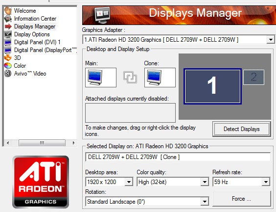 Ich habe mir den Dell (auch) wegen des Displayports gekauft. Mein neues Asus Board hat nämlich einen und ich betreibe mehrer Rechner an einem Monitor und da kam mir der zusätzliche digtale Eingang gerade recht. Nur kriege ich ihn nicht zum laufen. Habe ich den Monitor nur am DP des Boards fährt der Rechner ohne Bild hoch. Habe ich DVI und DP kommt nur der DVI Eingang. Im ATI CCC kann ich sehen das die Grafikkarte den DP irgendwie erkennt (sieh Bild rechte Seite unter Digital Panel (DVI) taucht er auf) aber sobald ich dann am Monitor auf DP wechsle kommt kein Bild. Weiß jemand Rat oder hat ihn schon am DP zum laufen bekommen?