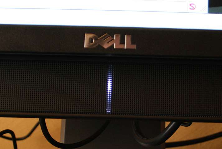 Sie hat am rechten Rand ein Drehregler, der die Lautstärke regelt und an dem sich das Gerät auch ausschalten lässt. Wenn sie angeschaltet ist, leuchtet dezet ein weiss/leicht-bläulicher Streifen in der Mitte. Wirklich prima daran ist, dass die Stromversorgung direkt aus dem Monitor kommt. Zum Soundcheck habe ich mal ne DVD reingelegt und das getestet. Für die Größe sind die Boxen ganz ordentlich was die Qualität und auch Lautstärke angeht. Gut fand ich auch, das am linken Rand zwei Klinkenbuchsen sind, in die dann (zwei ?!) Kopfhörer gesteckt werden können. Hier wurde nicht konsequent zu Ende gedacht. Will ich ein Headset nutzen, gehe ich hier leer aus, fehlt doch der Mikrofonanschluss. Hier sollte Dell nachbessern und die zweite Buchse mit einem Mikrofonanschluss belegen. Da die Buchse vorhanden ist, bleibt bislang nur der Mod.