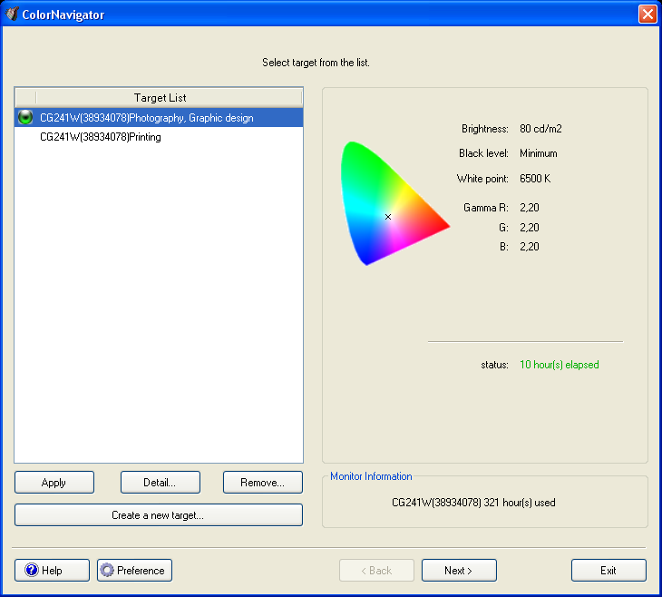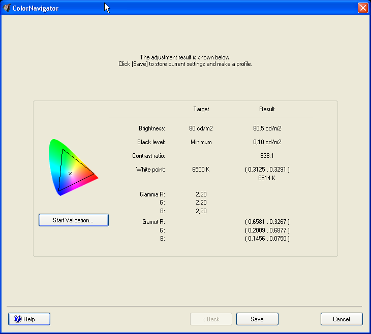 Als Software habe ich den dem Monitor beigelegten Colornavigator benutzt, die Einstellung Photography ausgewählt, die Ergebnisse hänge ich mal an: