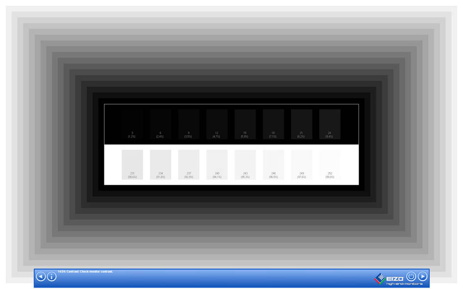 Bei Ansicht des in der Anlage beigefügten Testbildes von Eizo (Kontrasttest) kann ich im "sRGB -Edit" Unterschiede zwischen allen Tönen feststellen.