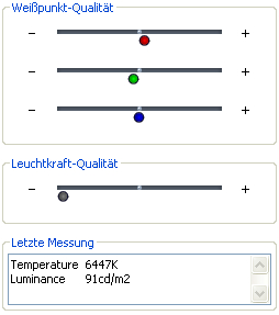 Habe jetzt noch den Weißpunkt eingestellt (siehe Anhang). Ich musste dafür die Helligkeit auf 100, Rot auf 97 und Blau auf 99 setzen. Ist aber schon ziemlich hell auf 100, hatte vorher 10.