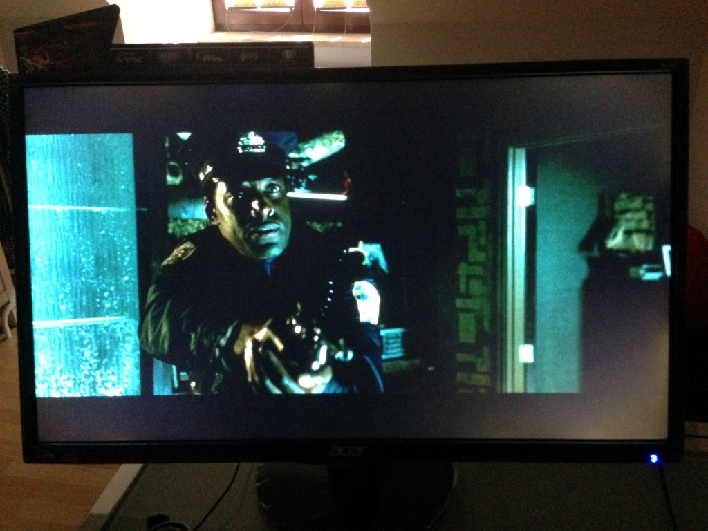 Es ist jedoch seltsam, dass diese Phänomen immer noch vorherrscht wenn man aus dem Menü bei Monitor rausgeht. Sprich nach dem Einstellen bleibt das Bild so wie auf den Bildern dargestellt. Ich habe die Bilder extra so aufgenommen damit man sieht in welchem Profil dieses Phänomen auftritt. Desweiteren bleibt das Phänomen so gar nach einen Neustart des Monitors bestehen. Und was mich in der Annahme bestärkt das es ein Fehler ist, ist die Tatsache das dieses Phänomen nur in den 3 Profilen Demo, Movie und Internet auftritt.