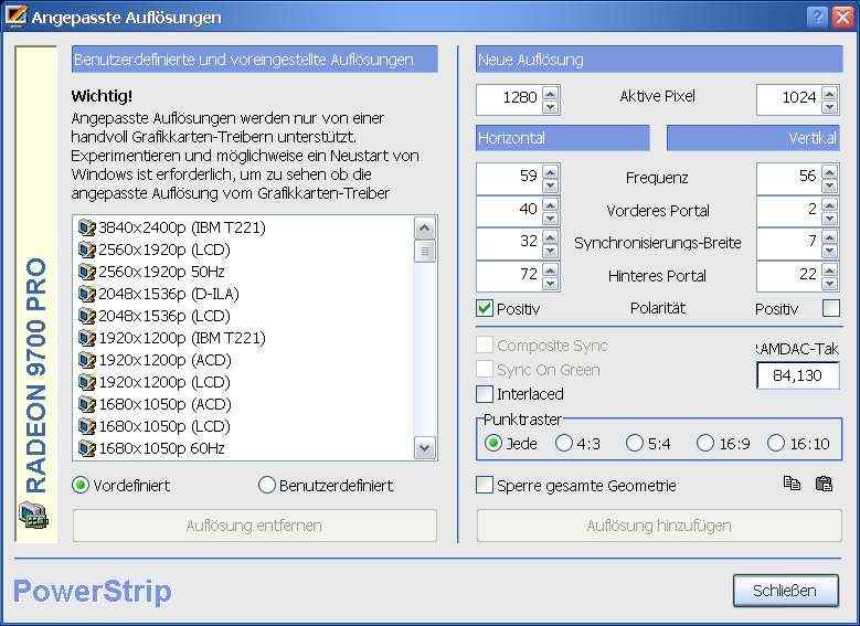 Da man unter Windows nicht in 1 er Schritten die Frequenz ändern kann muss Powerstrip her um hiermit die optimale Einstellung zu finden.