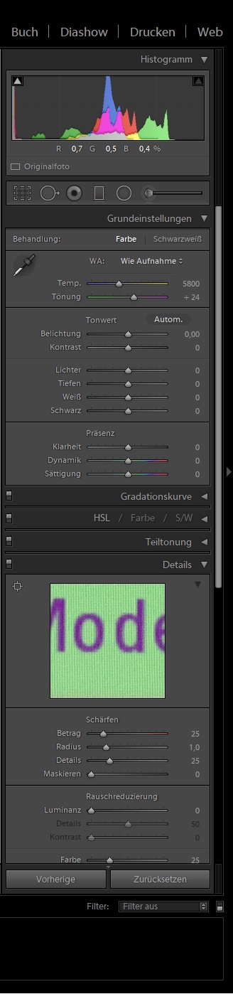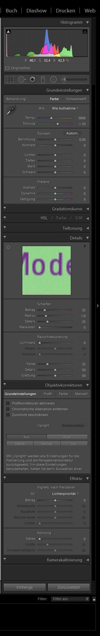 Ich finde alles unter 80 cd/m2 nicht mehr sinnvoll. Was spricht gegen ein kleines indirektes Licht im Raum, um den Effekt des voll abgedunkelten Raumes etwas abzuschwächen?