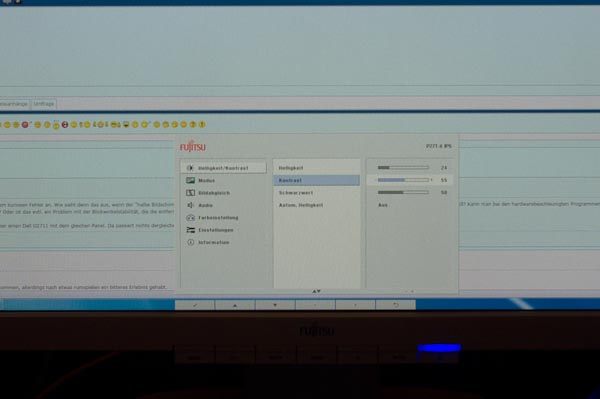 Nachdem ich nun schon rege mit dem Fujitsu Support am Arbeiten bin (Ich sollte doch bitte den Monitor auf Werkseinstellunen zurücksetzen und ausprobieren, ob der Fehler erneut auftritt.)