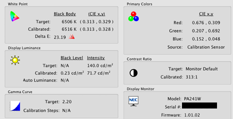 bin gerade dabei meinen PA241W mit dem Spectraview II zu kalibrieren und bekomme eine Warnung wegen zu hohem DeltaE Wert.