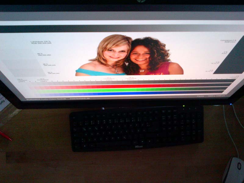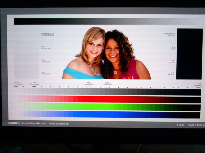 5.farben: im auslieferungszustand sind die farben für einen led monitor halbwegs in ordnung, nach bischen einstellerei kann man da sehr viel rausholen. das einzige was ich nicht geschafft habe ist, bei den burosch testbildern (bild mit den zwei frauen) auf der rechten seite die dunklen abstufungen vernünftig hinzubekommen. es funktioniert schon aber ich kann es nicht mit, nach meiner sicht guten farben und zu heller bildeinstellung (damit meine ich so ein leichten grau schleier), vereinbaren.