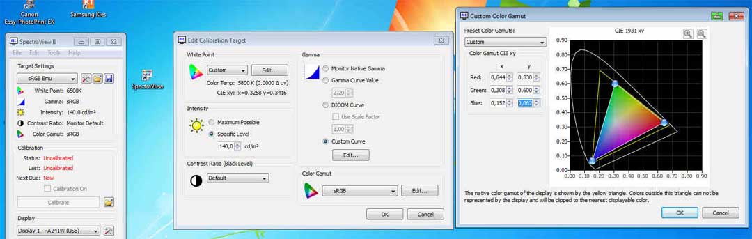 ich habe den PA241W , die Software Spectraview II und den NEC Sensor . Was für Werte muss ich in der Software eintargen , das der Monitor richtig kalibriert ist ? .