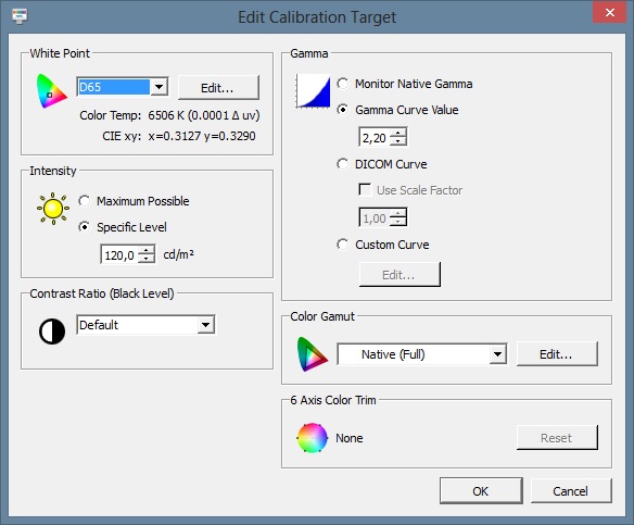 Ja, Einstellungmöglichkeiten habe ich. Eben diese, die auch die Software unterstützt, also Helligkeit, Schwarzwert, Weißpunkt, Gamma und Farbraum.
