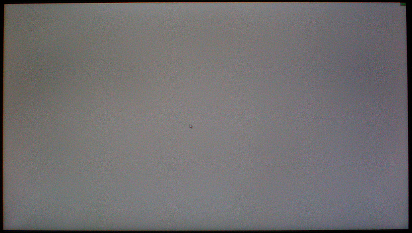 Während der nun ersten Woche im Betrieb fiel mir rein subjektiv ein Unterschied an Helligkeit und Farbe bei hellen Bildern auf. Dabei bemerkte ich einen dunklen Fleck in der oberen linken Ecke und ein etwas klarer werdendes Bild im rechten Drittel stärker werdend bis zum Rand.