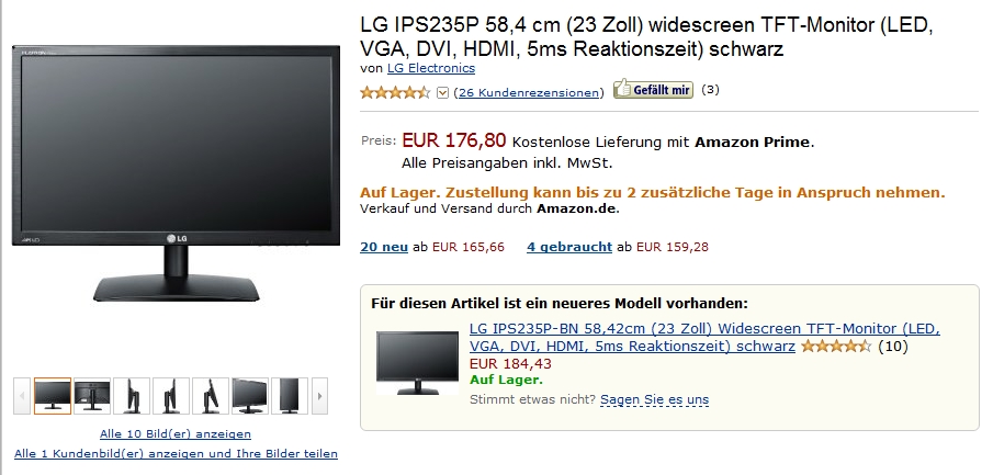 LG IPS235P-BN Milka 3. März 2013 Bei Amazon steht, dass es sich beim LG IPS235P-BN um das neuere Modell des LG IPS235P handelt (s. Foto)