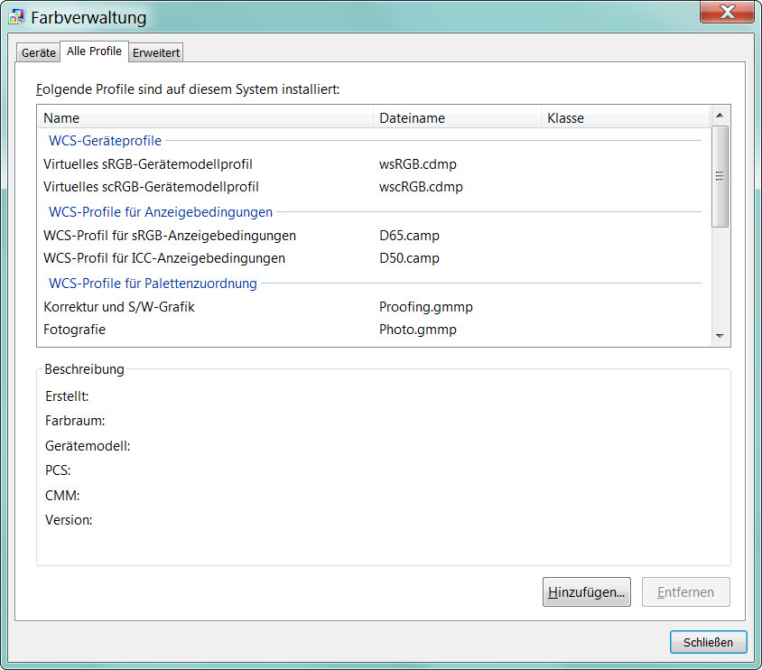 Die Screenshots FarbvWin_1 bis FarbvWin_6 im Anhang zeigen meine Einstellungen in der Windows Farbverwaltung.