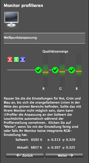Um die Sollwerte für den Weißpunkt zu erreichen, musste ich nur minimale Veränderungen durchführen.
