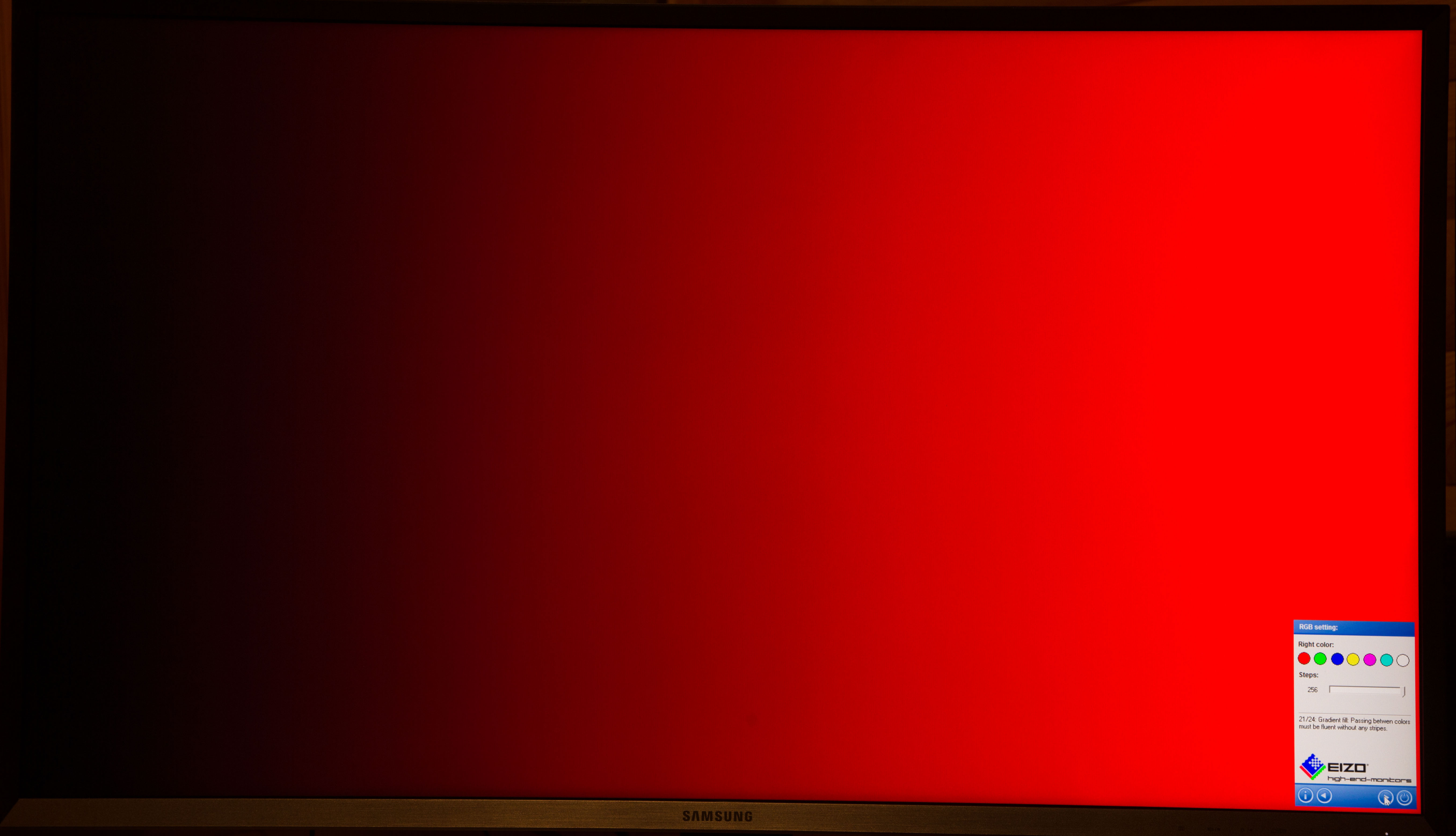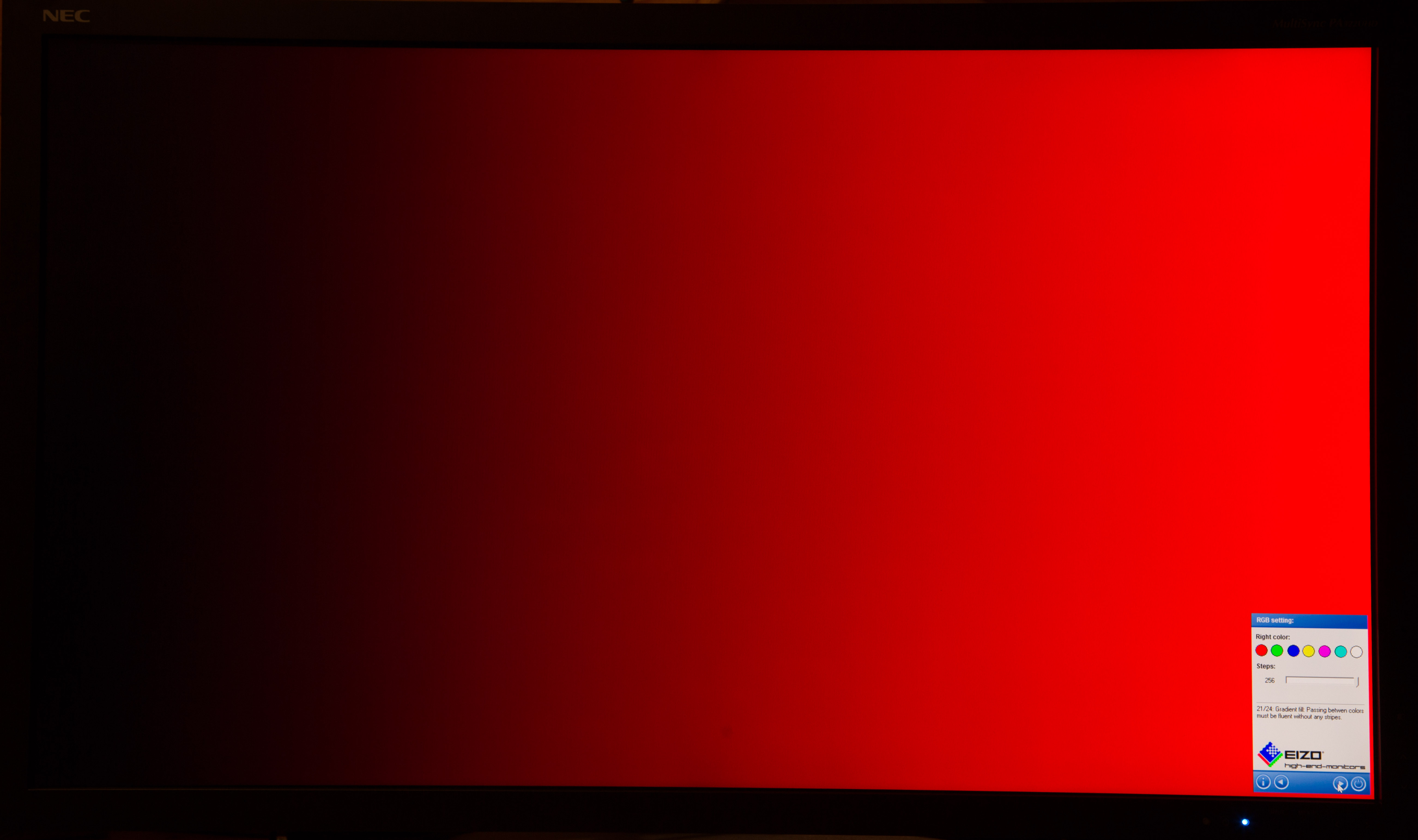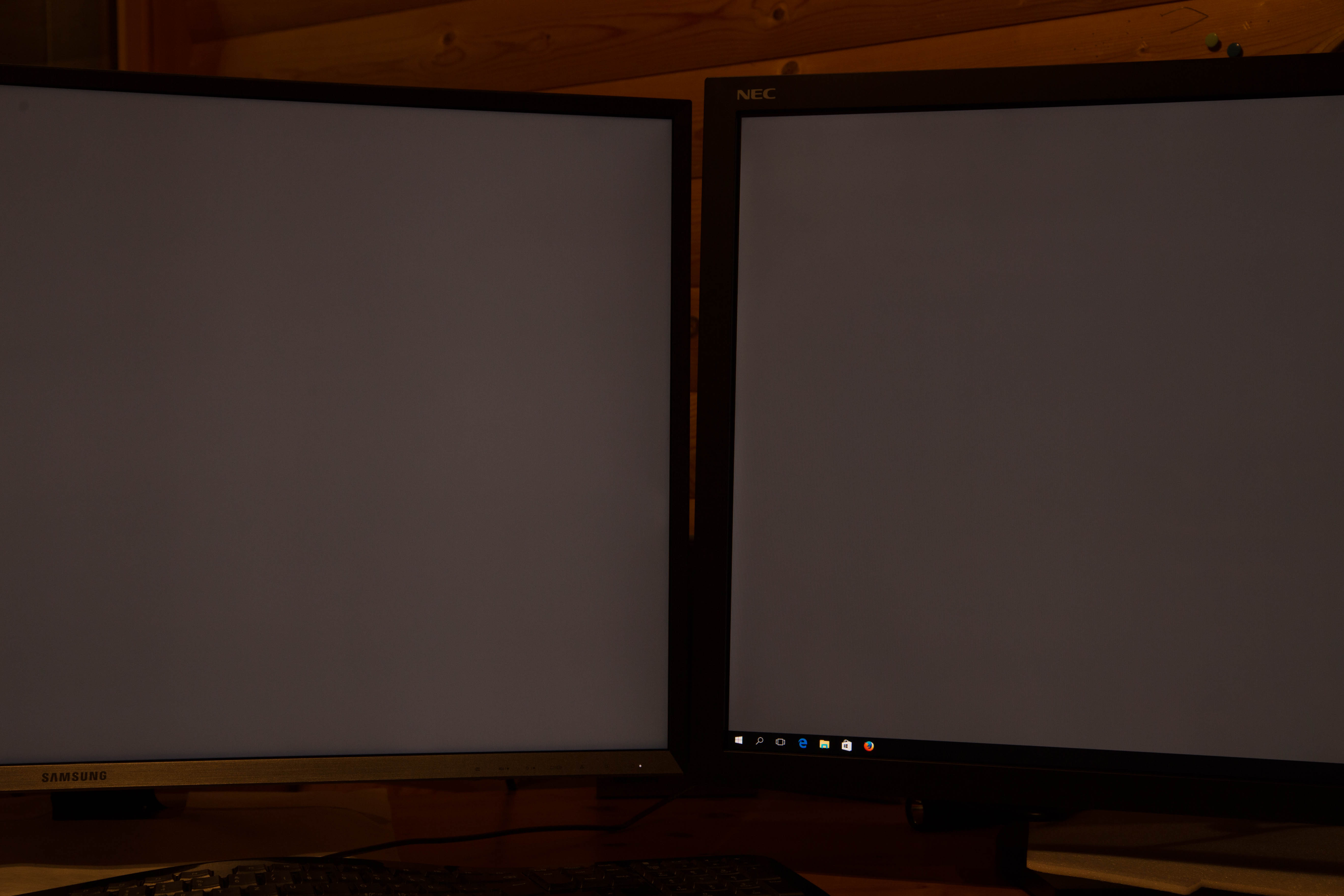 Dies war jedoch nicht nur eine Kopf- (bzw. Augen), sondern auch eine Bauch Entscheidung. Denn nicht nur die Technischen Daten, der Test von Prad, und die Erfahrungen der fünf Prad-Leser, sondern auch der direkte Vergleich von Fotos (die auf beiden Monitoren nebeneinander stehend wiedergegeben wurden) zeigen, dass es sich beim Samsung um einen Monitor mit sehr guter Bildqualität handelt. Für mich war schlicht und ergreifend kein Unterschied zu sehen. Beide Monitore waren vorher mit den gleichen Zielvorgaben Hardware kalibriert worden. Lediglich mit „optischen Hilfsmitteln“, wie mit langer Belichtung abfotografiertem Schwarzbild im dunklen Raum, und mit starker Vergrößerung weißer Schrift auf schwarzem Grund (Farbsäume) lassen sich bessere Ergebnisse