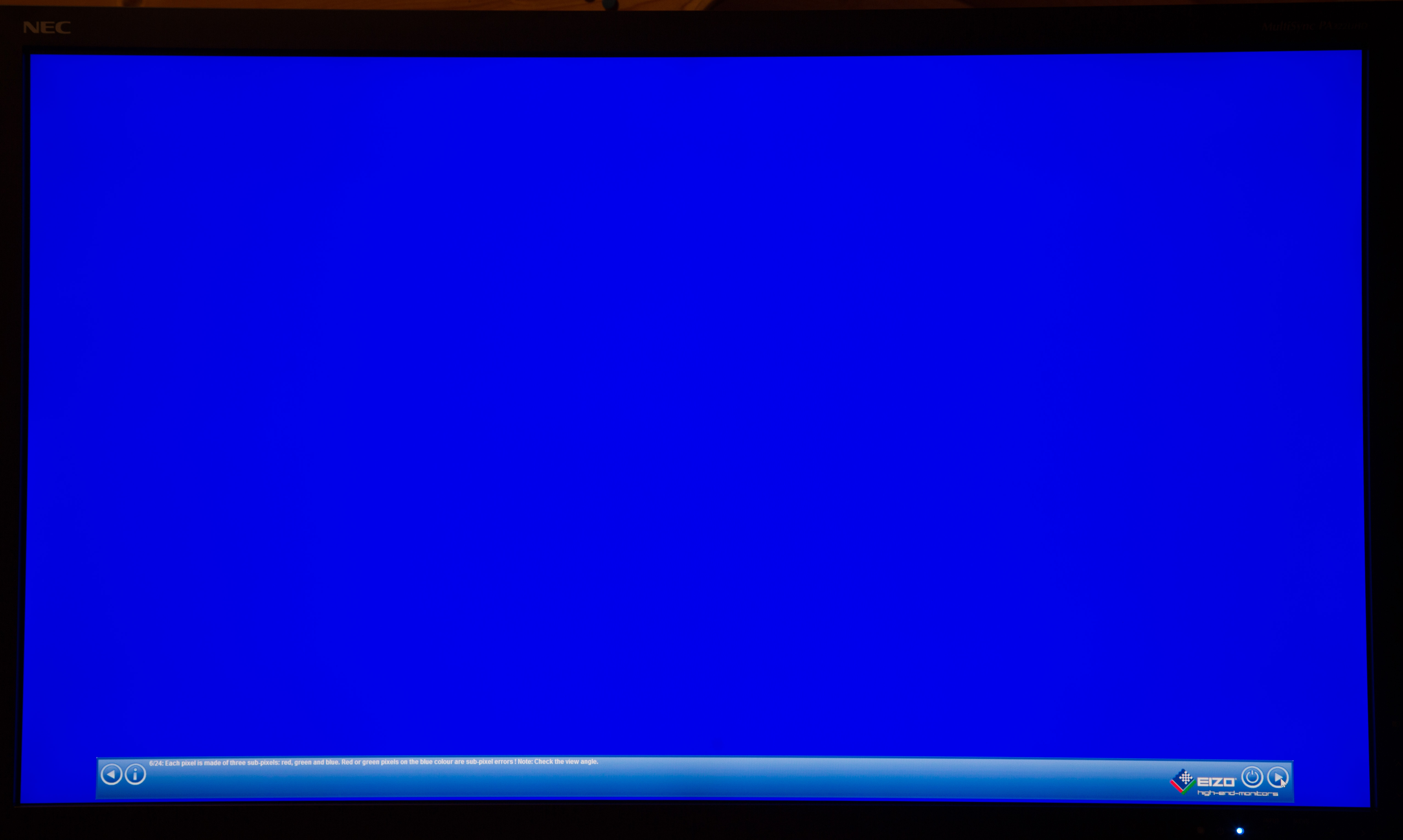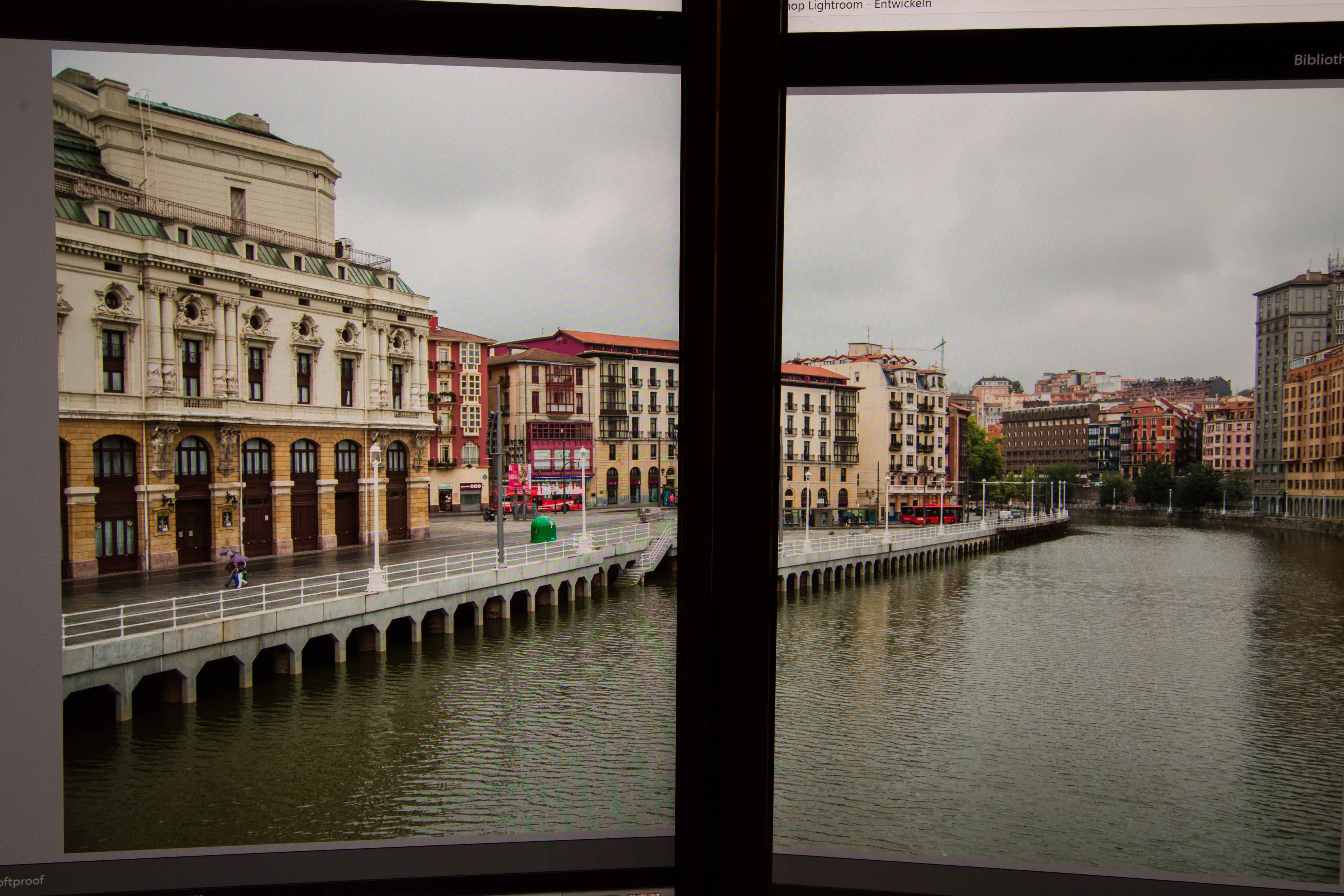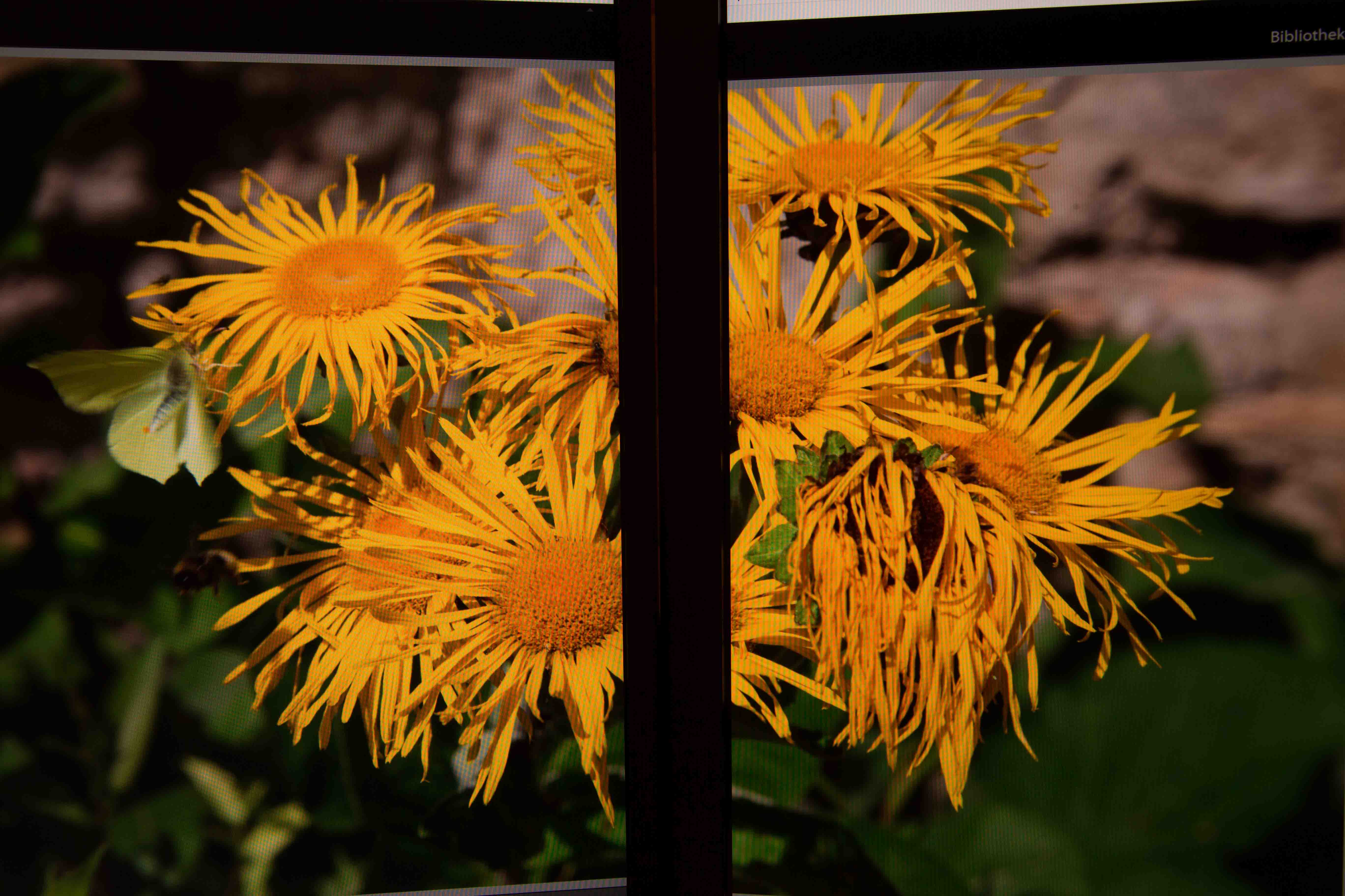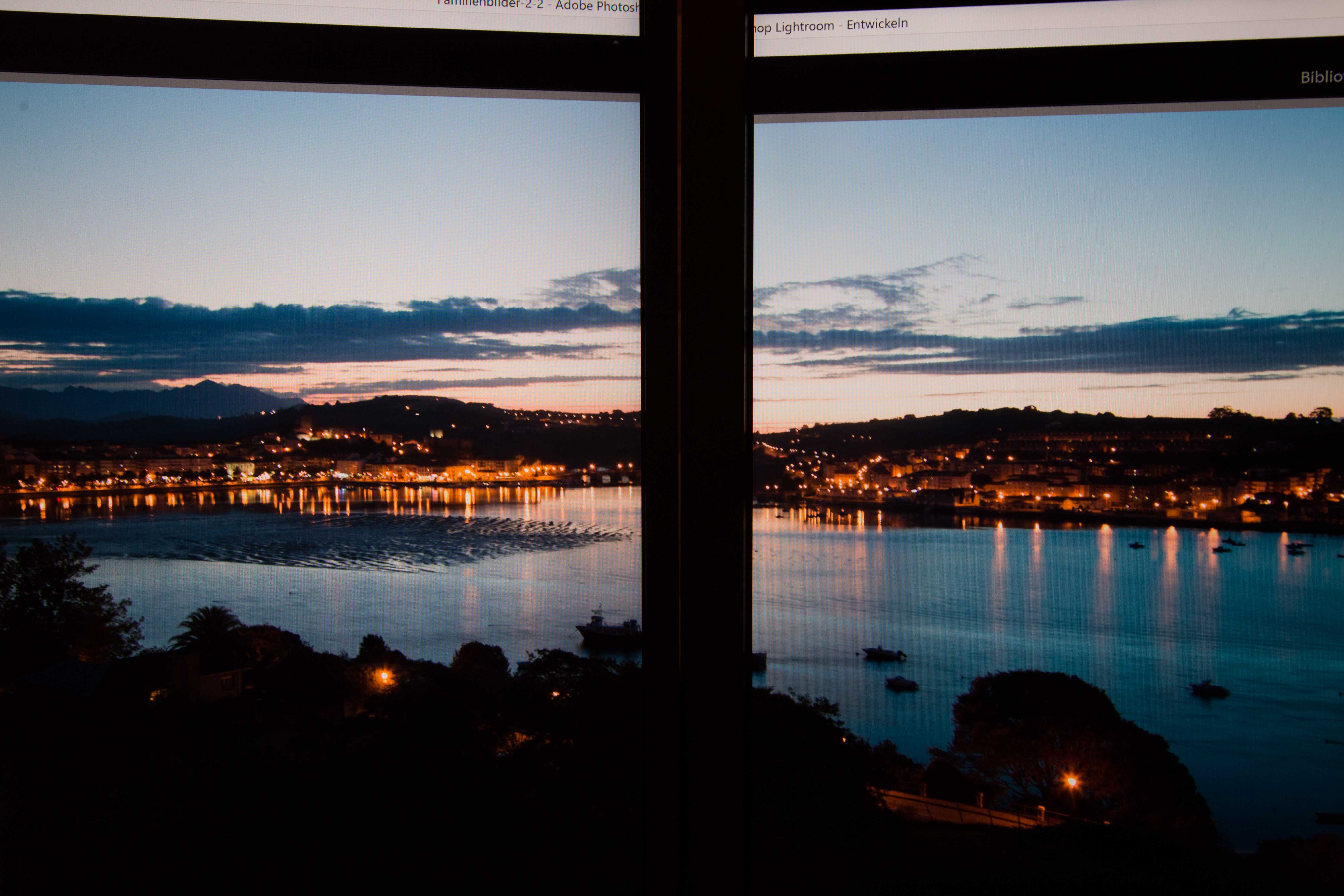 Dies war jedoch nicht nur eine Kopf- (bzw. Augen), sondern auch eine Bauch Entscheidung. Denn nicht nur die Technischen Daten, der Test von Prad, und die Erfahrungen der fünf Prad-Leser, sondern auch der direkte Vergleich von Fotos (die auf beiden Monitoren nebeneinander stehend wiedergegeben wurden) zeigen, dass es sich beim Samsung um einen Monitor mit sehr guter Bildqualität handelt. Für mich war schlicht und ergreifend kein Unterschied zu sehen. Beide Monitore waren vorher mit den gleichen Zielvorgaben Hardware kalibriert worden. Lediglich mit „optischen Hilfsmitteln“, wie mit langer Belichtung abfotografiertem Schwarzbild im dunklen Raum, und mit starker Vergrößerung weißer Schrift auf schwarzem Grund (Farbsäume) lassen sich bessere Ergebnisse