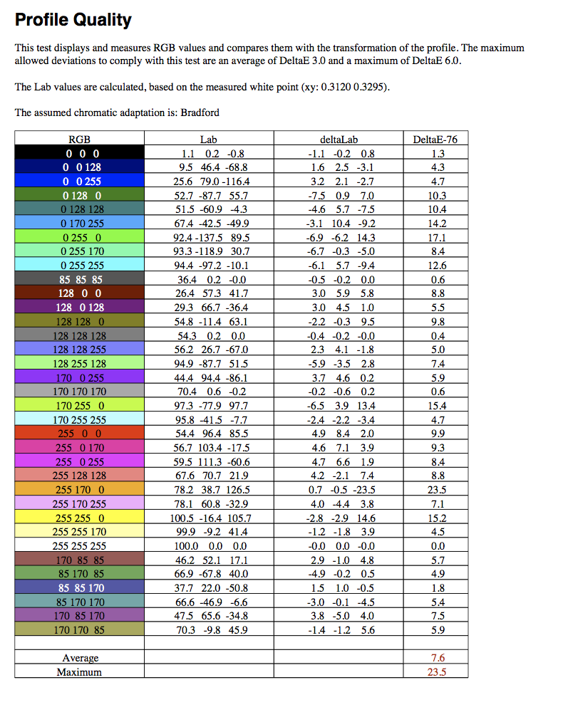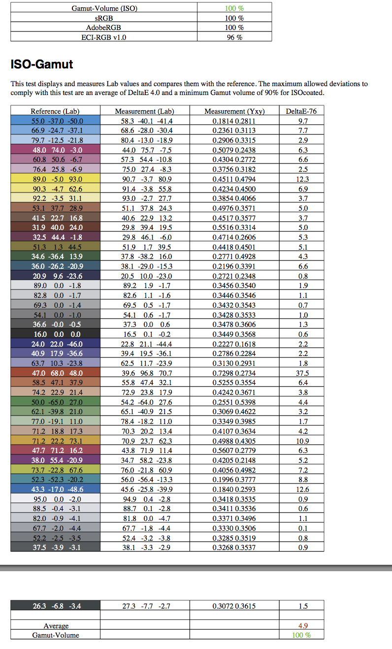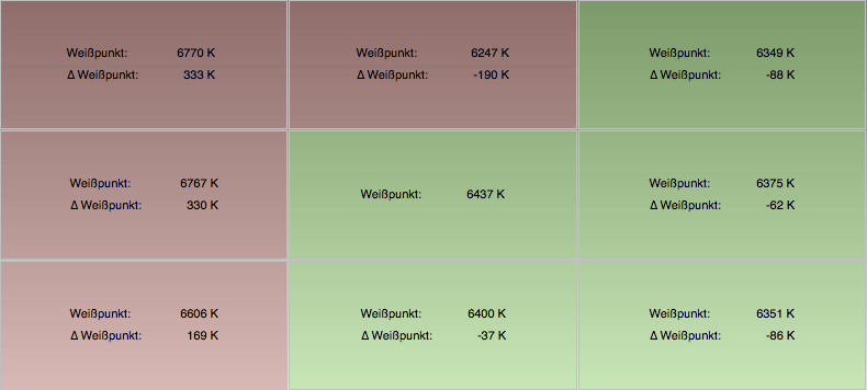 Es gibt wohl einige Dell-Monitore (der U2713H, U2713HM und U2711 gehören dazu), die sich bei Mac OS X (ich habe Mavericks, das scheint aber bei Lion auch schon so zu sein) nur mit YPbPr "anmelden", Mac OS X betreibt sie damit sozusagen als TV-Gerät. Schaltet man den Monitor im Benutzermenü auf RGB um, gibt es den von mir erwähnten grünen Farbstich. Wenn man dann den Monitor unter YPbPr kalibriert/profiliert, gibt es (ich sag' mal laienhaft) wohl durch die "Umrechnung" der Farbwerte die großen Abweichungen, die bei mir auftraten. Wer also immer auch diese Monitore unter Mac OS X kalibriert/profiliert, hat ein echtes Problem, vielleicht sogar, ohne sich dessen bewußt zu sein....