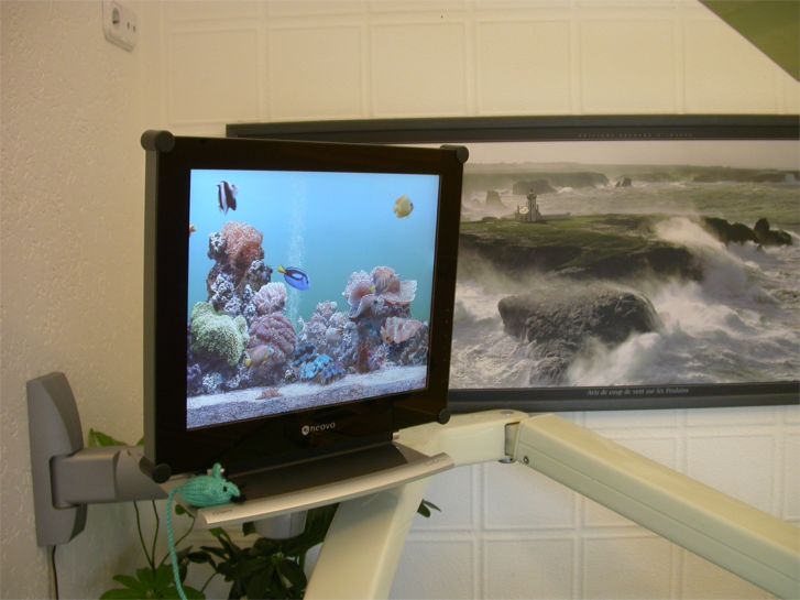 Ich hab mal ein Bild angehängt, wie das in der Praxis aussieht. Leider habe ich doofe CRT-Schwenkarme gekauft, da ich nicht wusste, dass es direkt zu befestigende TFT-Arme gibt. Die Idioten, die das Netzwerk eingerichtet haben, haben mir zu den jetzt montierten Armen geraten. Was für eine Platz- und Geldverschwendung, was für ein Unsinn! Vielleicht hole ich mir noch andere Arme, dann kommen die doofen Füsse ab und es sieht viel besser aus. -