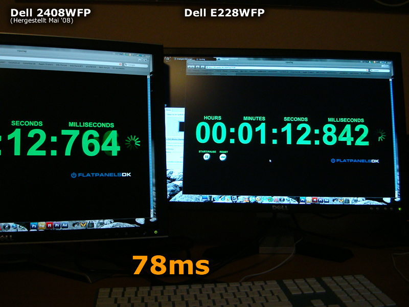 Dell 2408WFP gegen meinen Dell 228WFP .. man muss natürlich auf die unterschiedlichen Planels hinweisen (PVA gegen TN) ... trotzdem sind die Ergebnisse wahnsinn wenn man bedenkt, dass Dell 6ms grey-to-grey angiebt ...