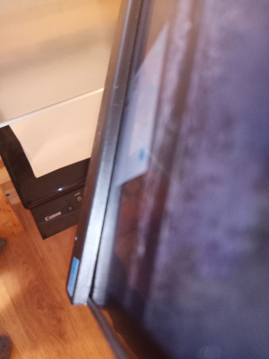 An den Seiten rechts und links hat der Monitor ziemlich große Spaltmaße, wie ich finde und auch über die gesamte Bildfläche ist beim unteren Rahmen etwas Bewegungsspiel; ich kann da z.B. mit meinem Fingernagel "einhaken". Ein Bild hänge ich an.