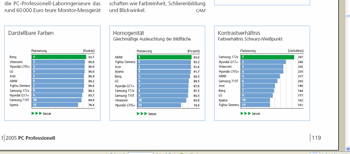 CiTay: das ist nicht korrekt. In der aktuellen c't wurde nur der FS P19-2 getestet, nicht aber der Samsung 193P.Oops, hast Recht. 913, 193... wer soll da noch den Überblick behalten...