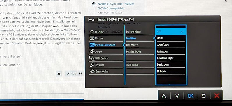 Ich habe gestern außerdem mit einem anderen Windows 10 Laptop und HDMI Kabel getestet, gleiches verhalten... Der Monitor startet immer mit "sRGB", obwohl "Standard" eingestellt ist. Ein hin und her wechseln von sRBG auf Standard ist nicht möglich - Bild bleibt gleich. Erst das aktiveren und deaktivieren von DualView bringt das Bild in den Standard Modus: