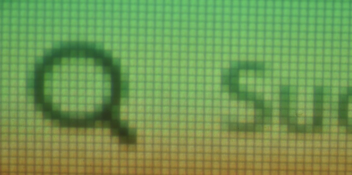 Ich hab' einen Optoma gt670 geliehen bekommen. Er zeigt leider ein Raster, im Anhang eine Aufnahme des Rasters als Beispiel.
