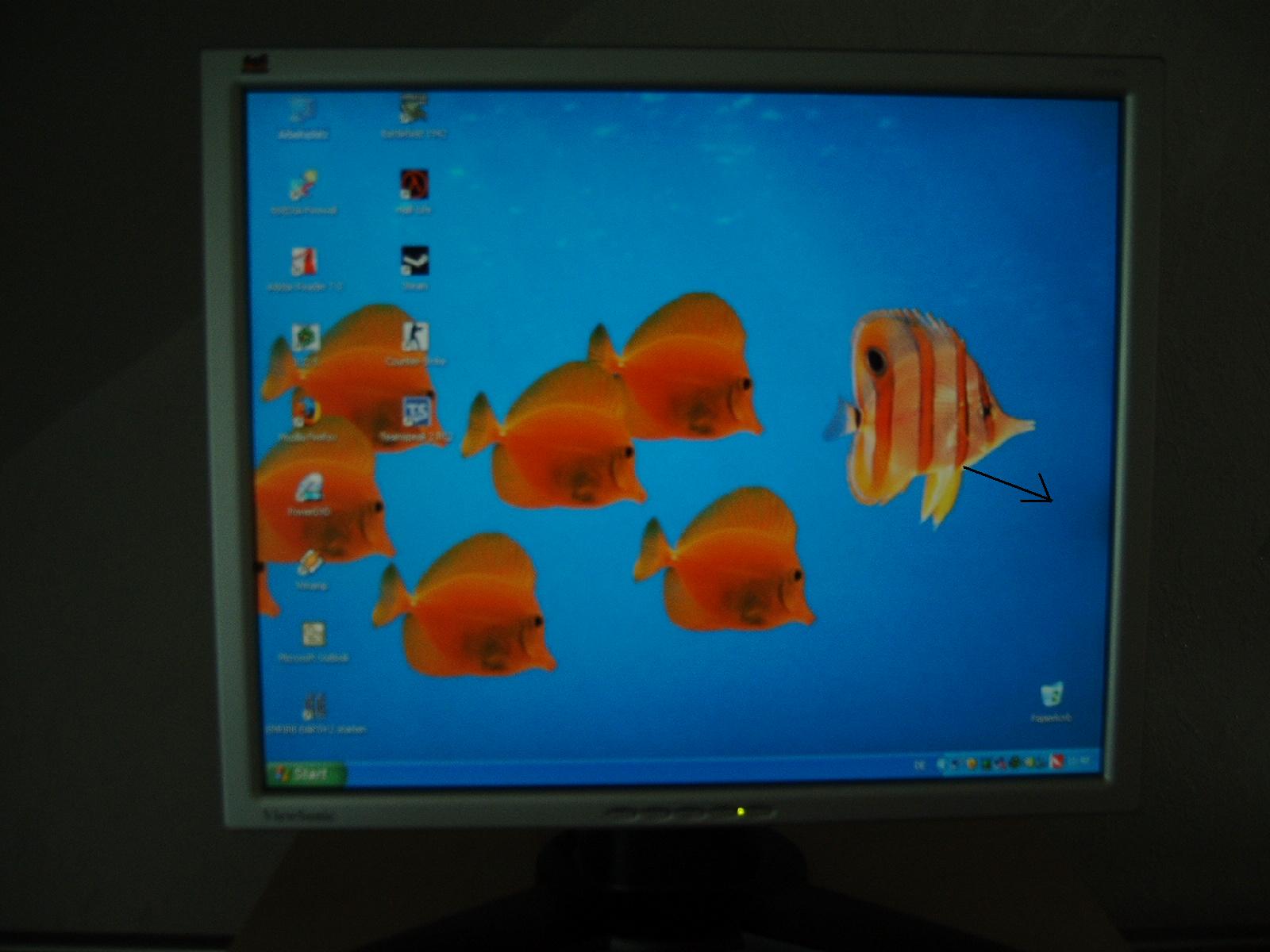 Ich habe mal dazu ein paar Bilder angehängt. Leider mußte ich gestern bei dem Nokiatest noch was anderes entdecken und zwar eine etwas dunklere Stelle am rechten mittleren Randbereich. Sie ist auch und gerade am besten bei Tageslicht und allen RGB-Hintergründen(siehe Bilder) zu sehen, Bild 6 ( bei tageslicht, leider wirkt es bei der verkleinersten Version sehr Dunkel in der Umgebung, heute ist es etwas trüb) und 7(abgedunkeltem Raum) verweisen per Pfeil drauf. Sieht man am besten, wenn man auf das Bild klickt und es sich vergrößert anschaut. Auf anderen Farbhintergründen ist sie auch zu sehen. Im übrigen entsprechen die Fotos der RGB-Hintergründe und der Fische einem realistischen EIndruck wie er bei Tage entsteht.