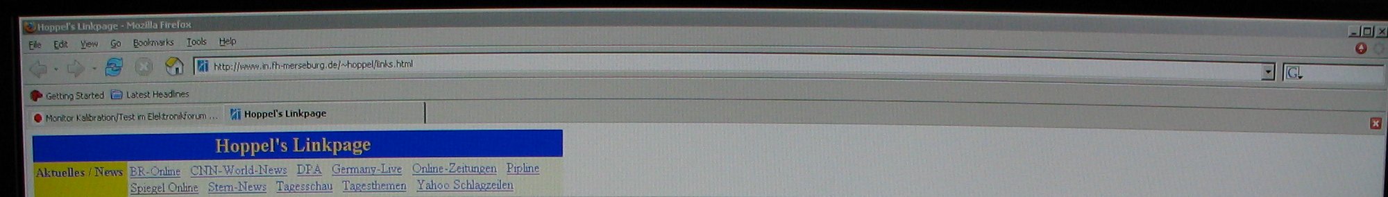 Heut früh war UPS da und hat mir mein zweiten Dell 2005FPW gebracht... die Farben stimmen jetzt sogar (bei SRGB ist blau auf 93% voreingestellt), aber dafür 3 (!!!) Pixelfehler. :((( 2x grün und 1x grau.